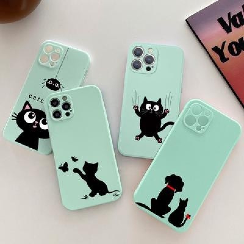 Черный Кот Любовь Сердце Чехол для iPhone 13 12 11 Pro Max SE 2022 Samsung S22 A52 A33 A53 A03s Xiao