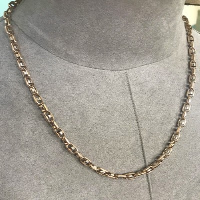 Полновесная якорная цепь со вставками из красного и белого золота 585 пробы 60см